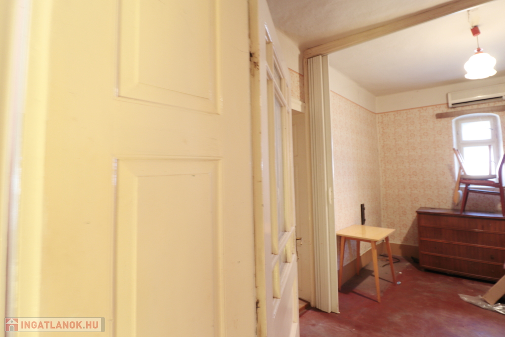3 tágas szoba, normál (nem alacsony) belmagassággal – akár oszthatók, jól alakíthatók terek, szép beltéri eredeti ajtók